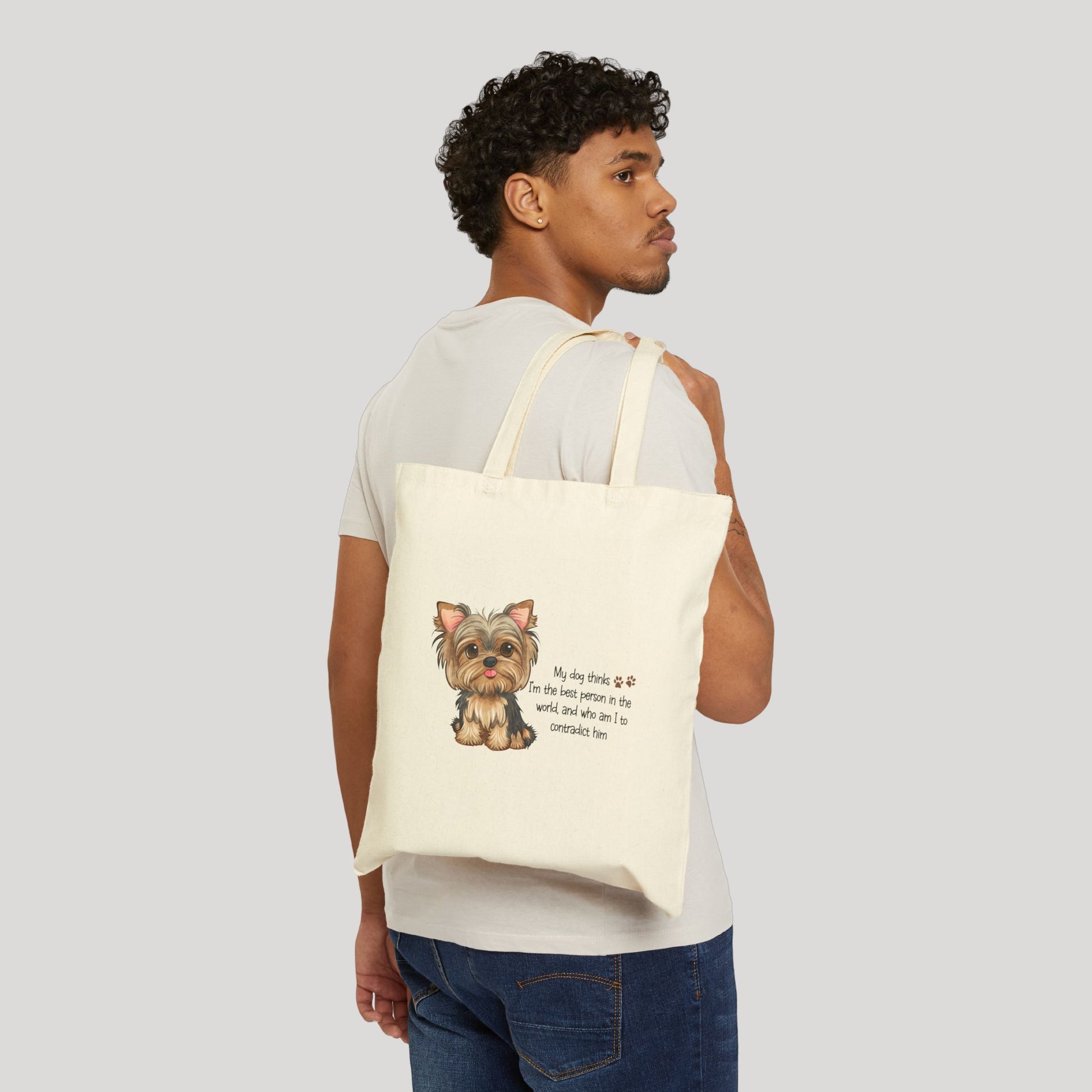 This 100% cotton bag comes in one size (15" x 16"), perfect for everyday use. While the canvas material will display your personalized pet designs in fantastic colors, it is durable and will last for years. The bag features 20" handles (made from the same canvas), making it easy to carry even after a week of shopping.